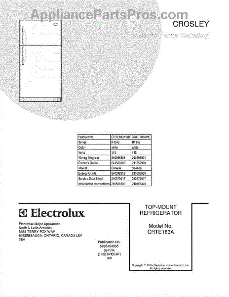 Parts for Crosley CRTE183AWE: 01 - Cover Parts