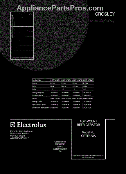 Parts for Crosley CRTE183AWK: 01 - Cover Parts