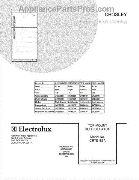 Parts for Crosley CRTE183AWM: 01 - Cover Parts