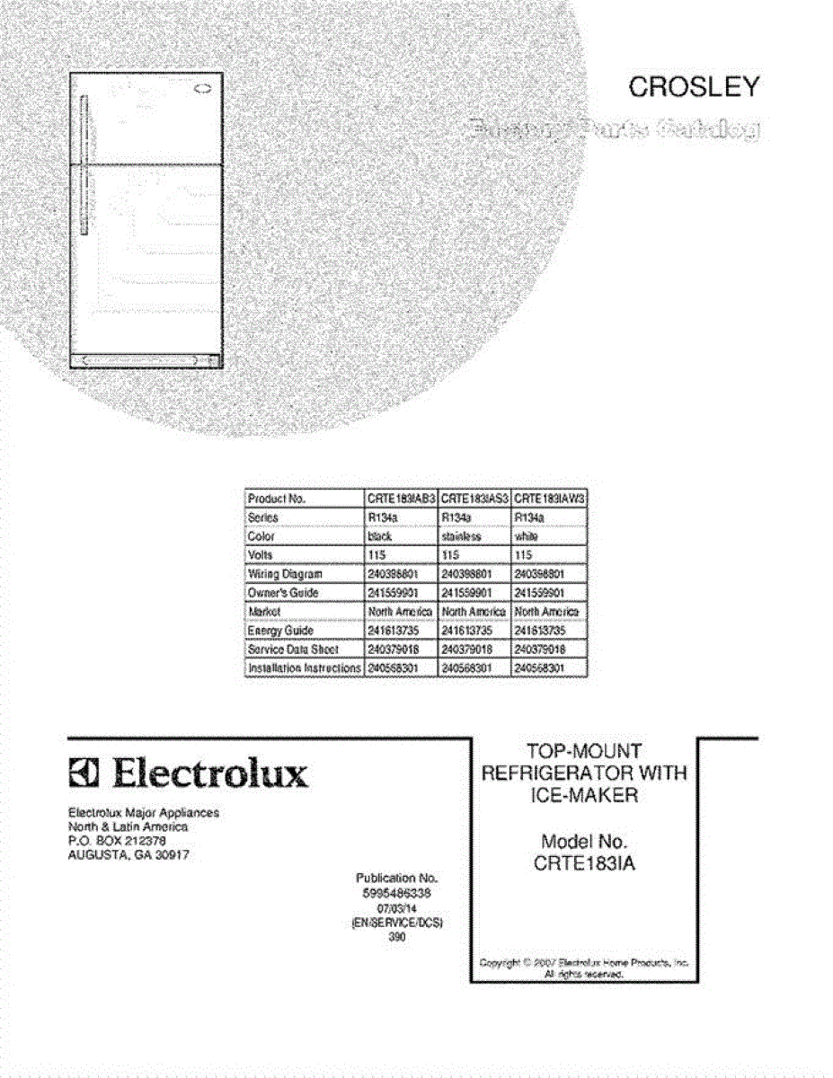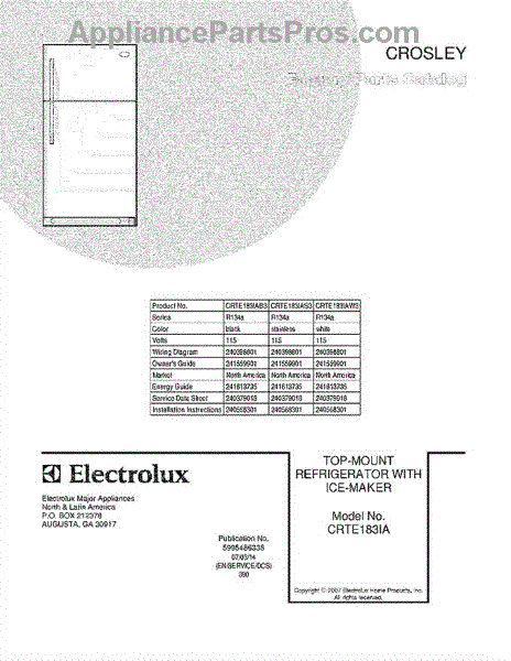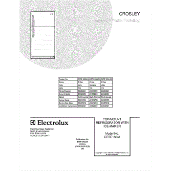 Parts for Crosley CRTE183IAW3: 01 - Cover Parts