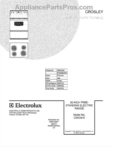 Parts for Crosley CSK341003: 01 - Cover Parts