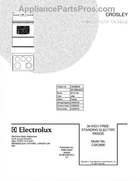 Parts for Crosley CSK389003: 01 - Cover Parts