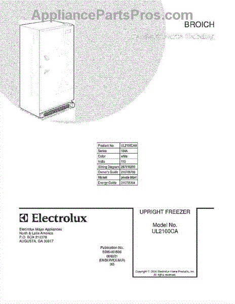 Parts for Crosley UL2100CA8: 01 - Cover Parts