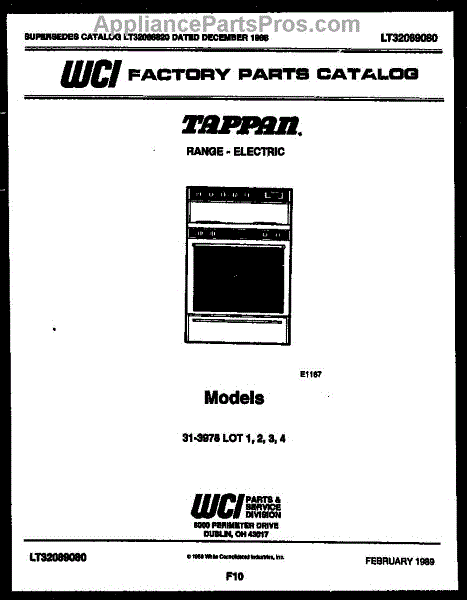 Parts for Frigidaire 31-3978-23-03: 01 - Cover Parts
