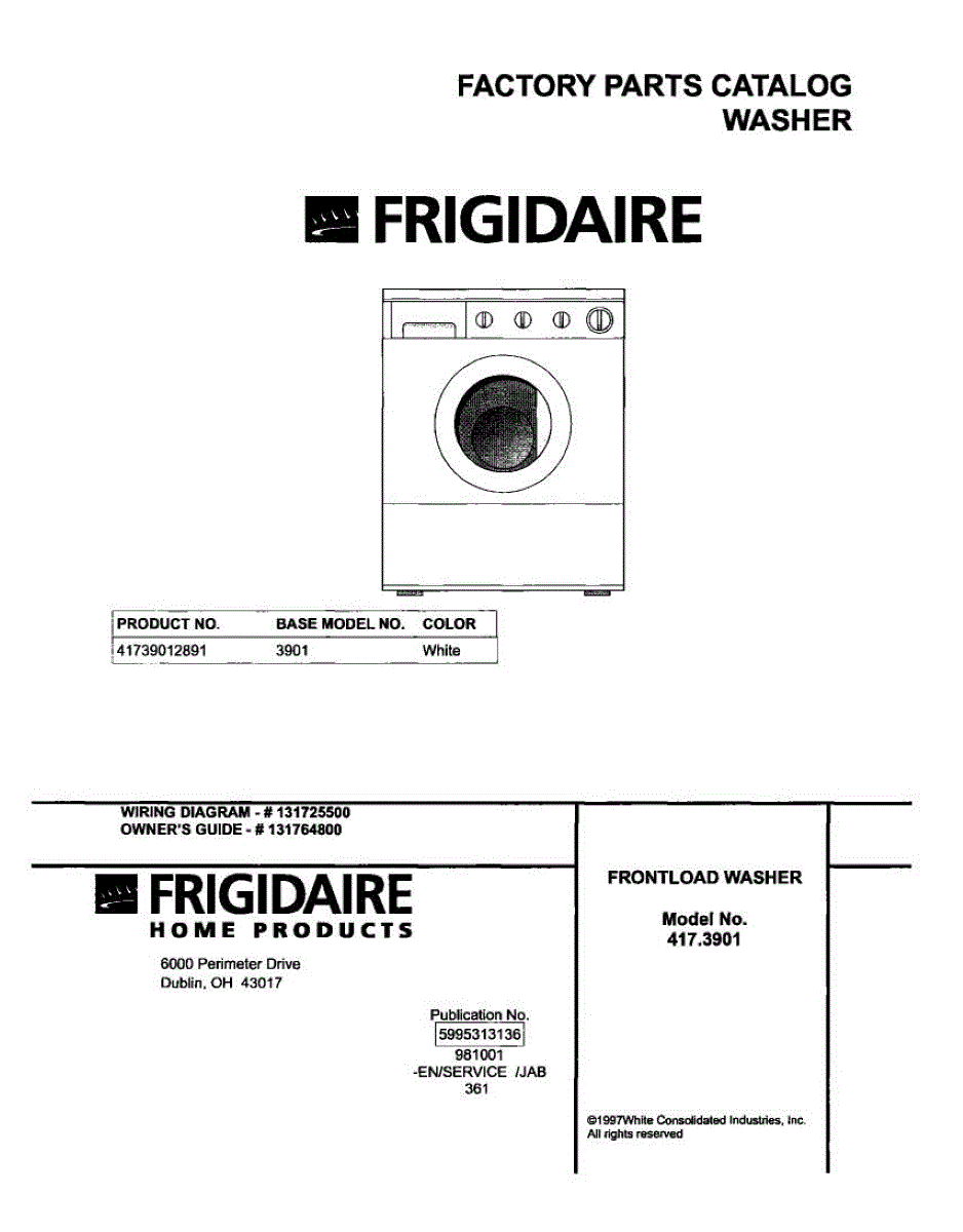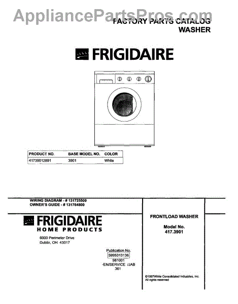 Parts for Frigidaire 41739012891: 01 - Cover Parts