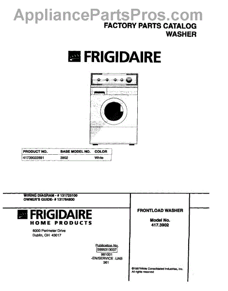 Parts for Frigidaire 41739022891: 01 - Cover Parts