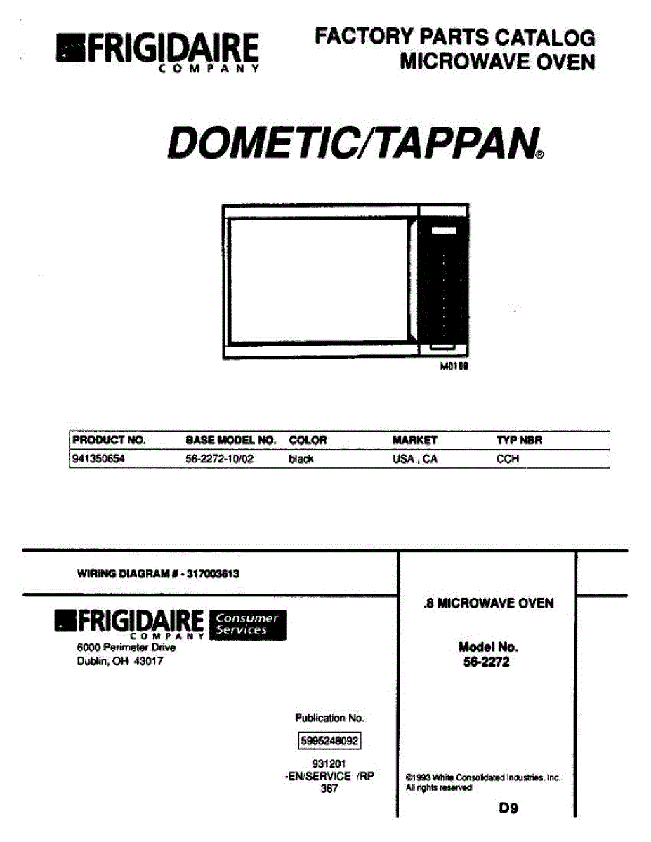 Parts for Frigidaire 56-2272-10/02: 01 - Cover Parts