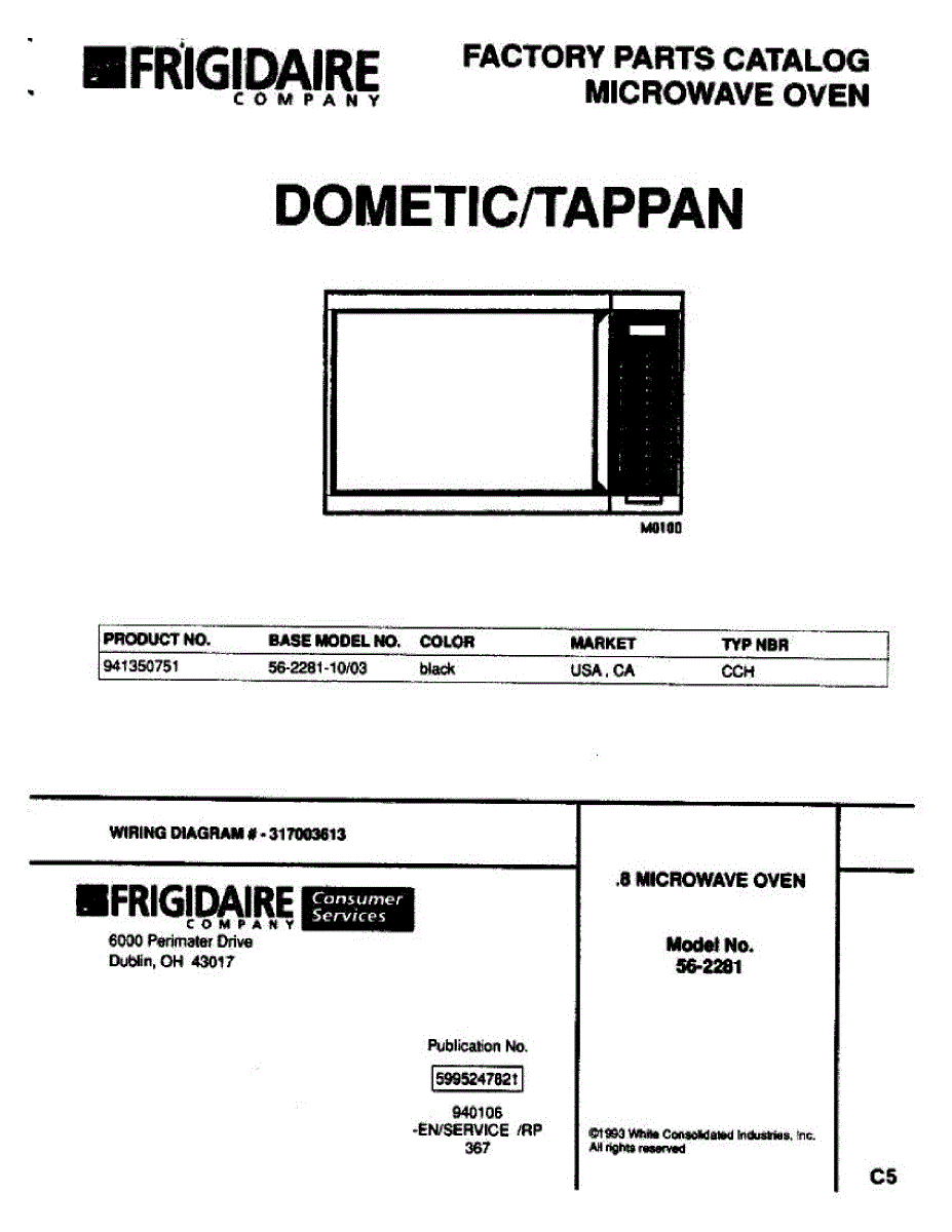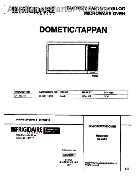 Parts for Frigidaire 56-2281-10/03: 01 - Cover Parts