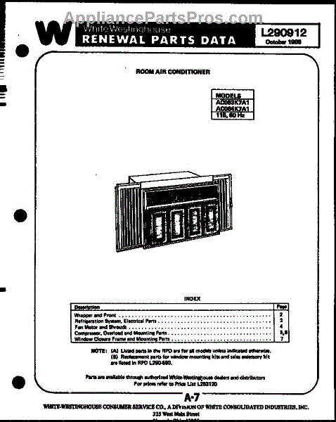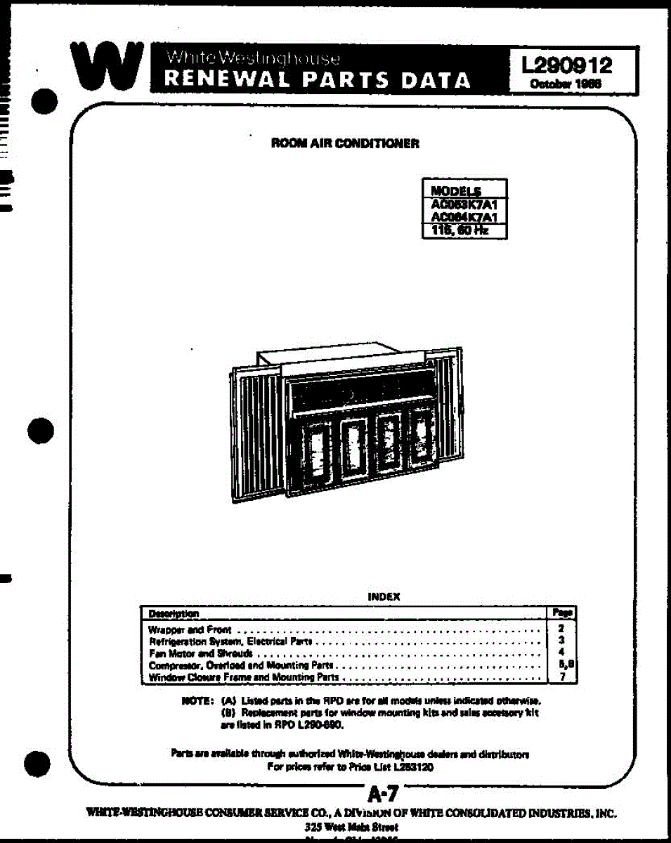 Parts for Frigidaire AK107K1V2: 01 - Cover Parts