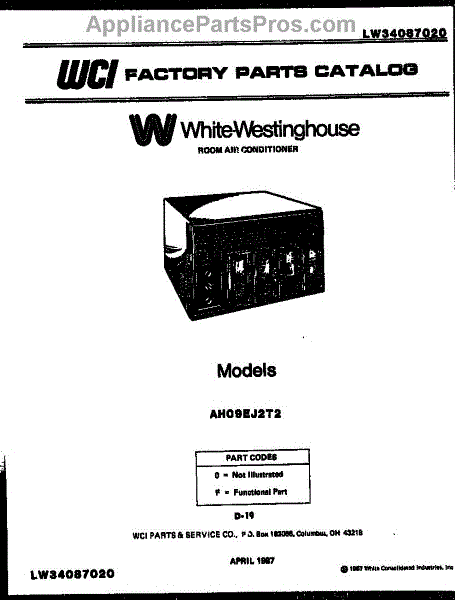 Parts for Frigidaire AS187K2K1: 01 - Cover Parts