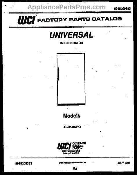 Parts for Frigidaire ASM140WK1: 01 - Cover Parts