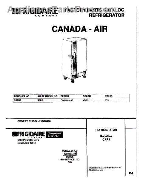 Parts for Frigidaire CAR12: 01 - Cover Parts