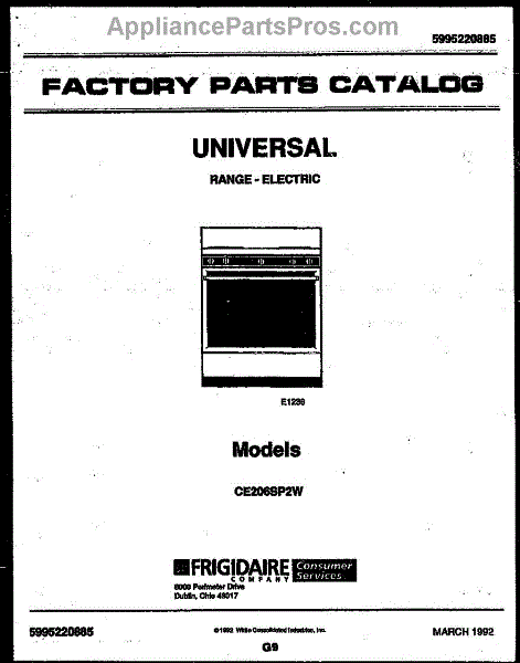 Parts for Frigidaire CE206SP2W-00: 01 - Cover Parts