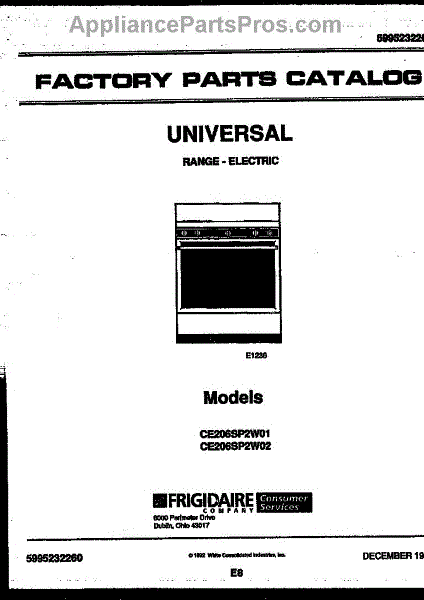 Parts for Frigidaire CE206SP2WW02: 01 - Cover Parts