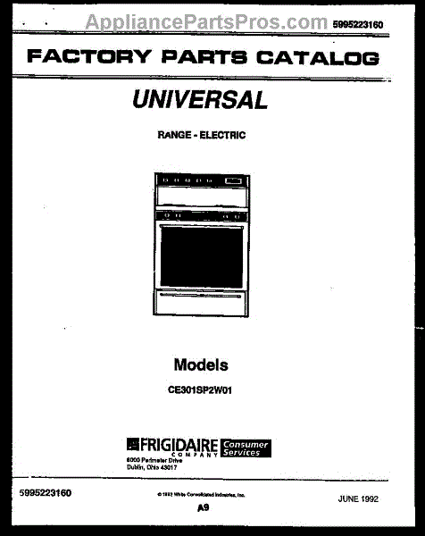 Parts for Frigidaire CE301SP2L01: 01 - Cover Parts