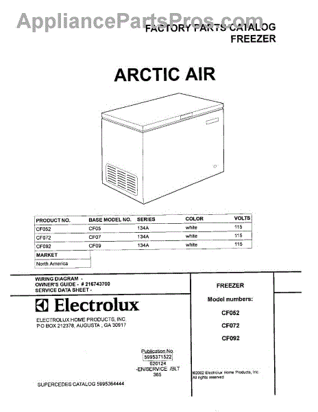 Parts for Frigidaire CF052: 01 - Cover Parts