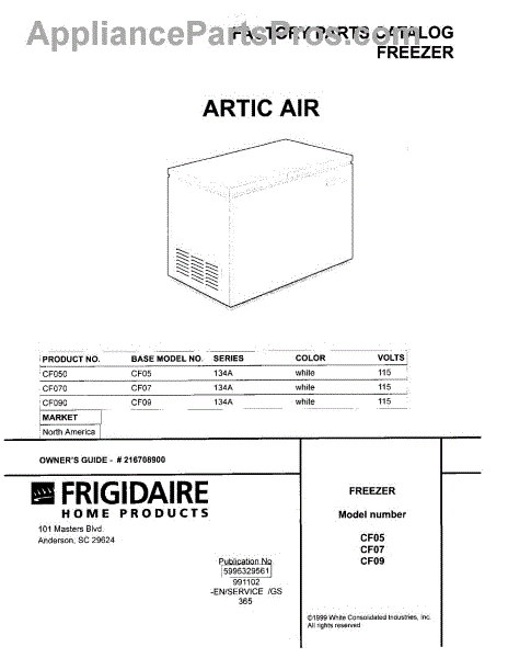 Parts for Frigidaire CF070: 01 - Cover Parts
