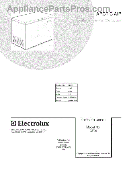 Parts for Frigidaire CF093: 01 - Cover Parts