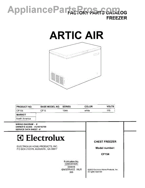 Parts for Frigidaire CF154: 01 - Cover Parts