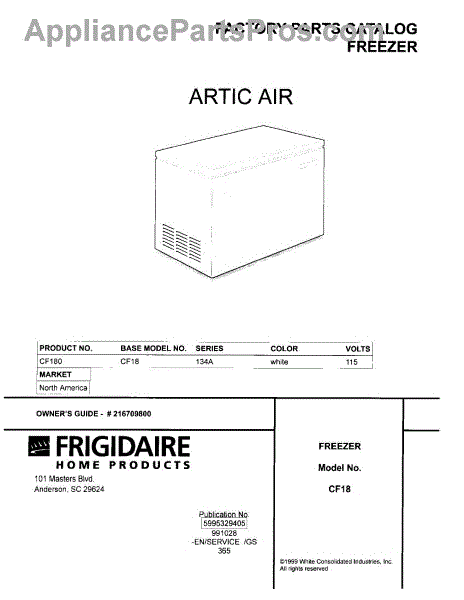 Parts for Frigidaire CF180: 01 - Cover Parts