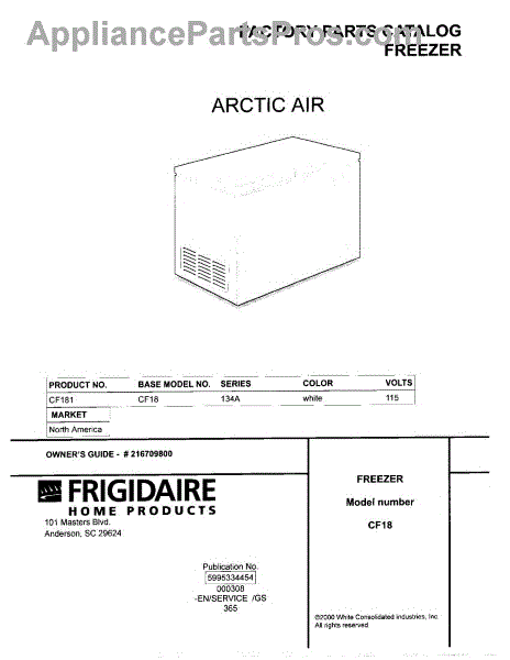 Parts for Frigidaire CF181: 01 - Cover Parts