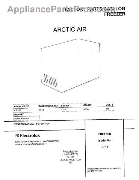 Parts for Frigidaire CF183: 01 - Cover Parts