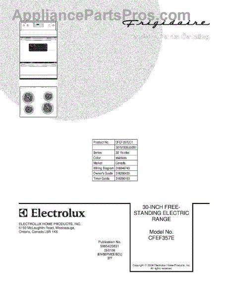 Parts for Frigidaire CFEF357EC1: 01 - Cover Parts