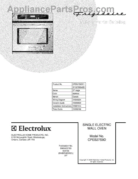Parts for Frigidaire CPEB27S9DC1: 01 - Cover Parts