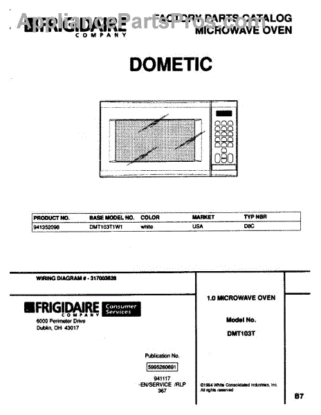 Parts for Frigidaire DMT103T1W1: 01 - Cover Parts