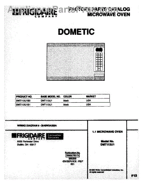 Parts for Frigidaire DMT113U1B1: 01 - Cover Parts