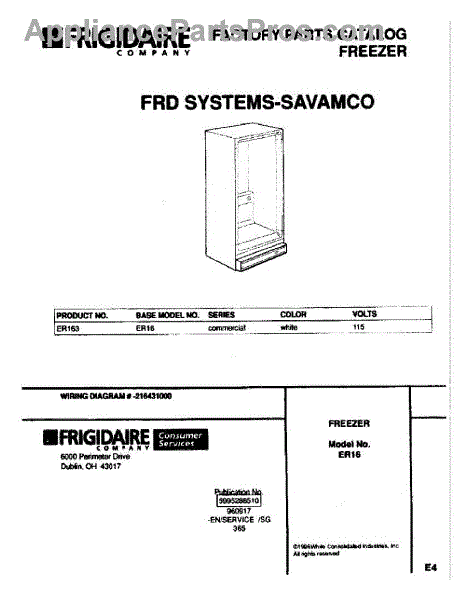 Parts for Frigidaire ER163: 01 - Cover Parts
