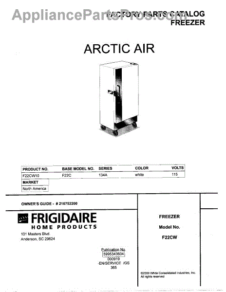 Parts for Frigidaire F22CW10: 01 - Cover Parts