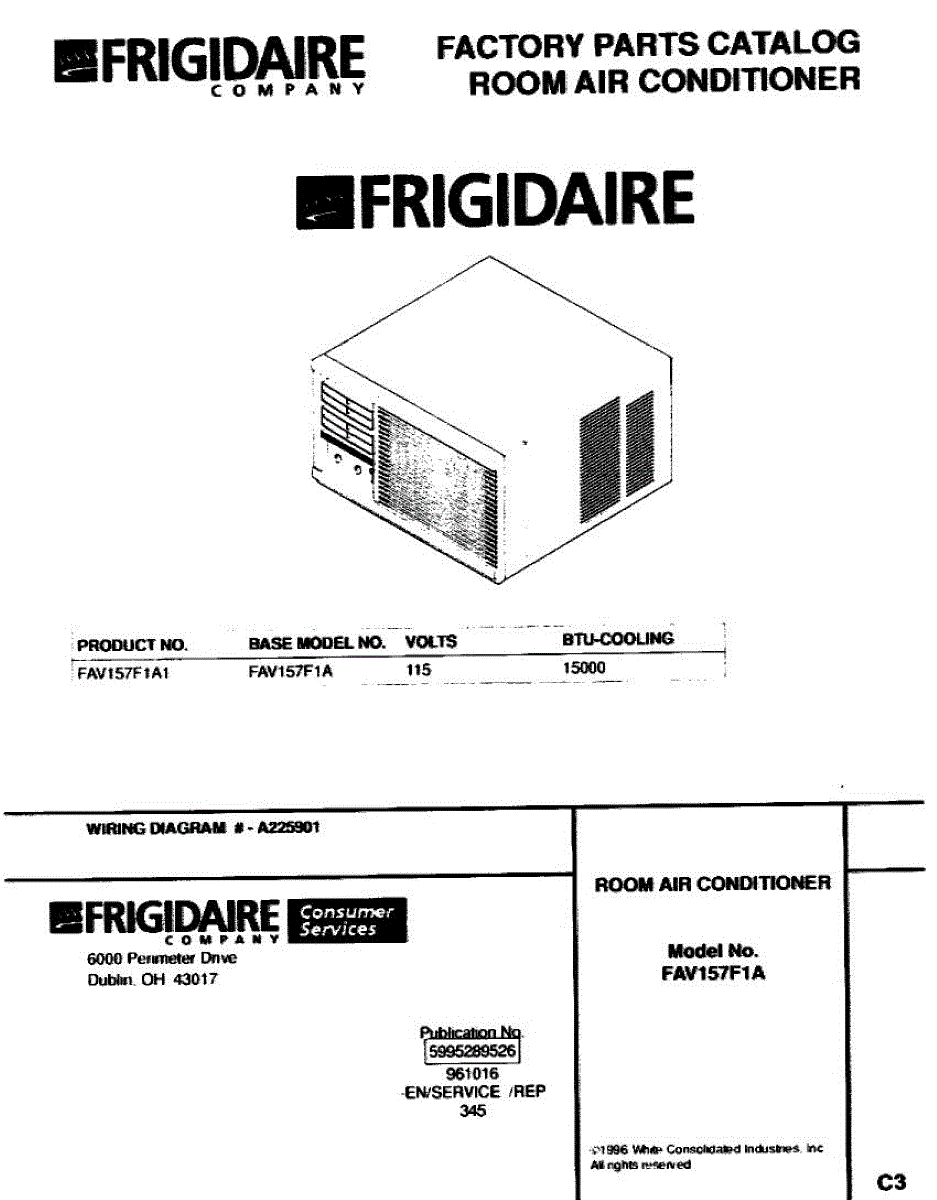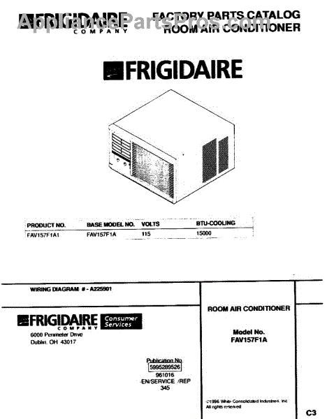 Parts for Frigidaire FAV157F1A1: 01 - Cover Parts