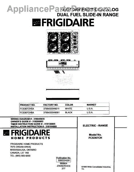 Parts for Frigidaire FCS367CHBA: 01 - Cover Parts