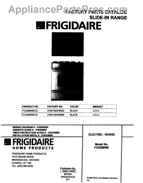Parts for Frigidaire FCS388WECC: 01 - Cover Parts