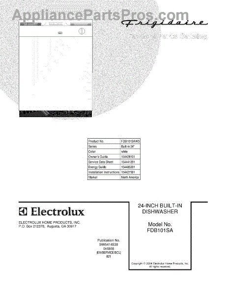 Parts for Frigidaire FDB101SAW3: 01 - Cover Parts