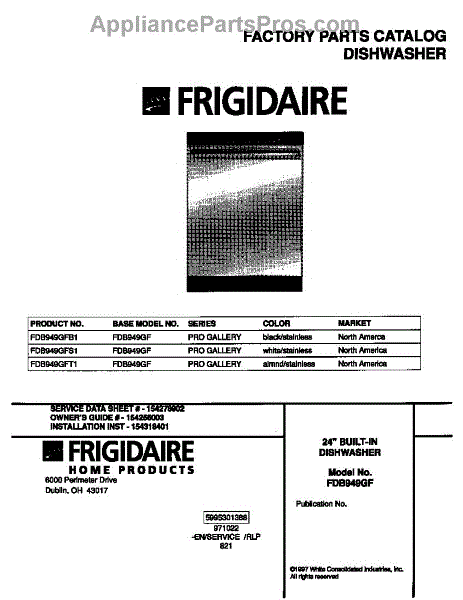 Parts for Frigidaire FDB949GFB1: 01 - Cover Parts