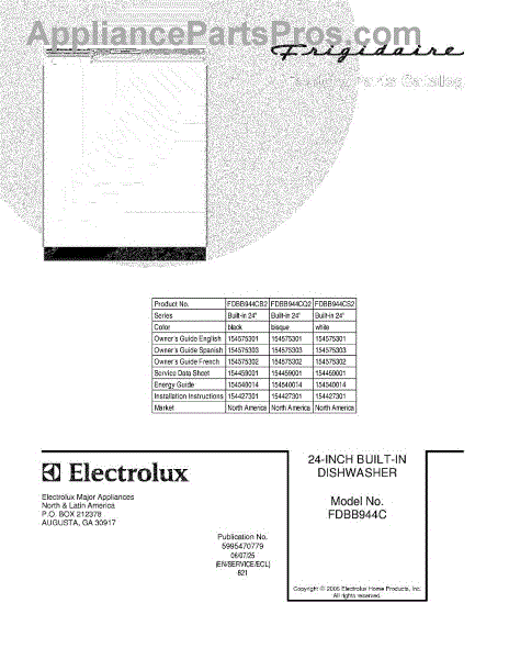 Parts for Frigidaire FDBB944CS2: 01 - Cover Parts