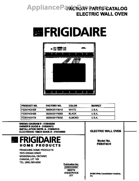 Parts for Frigidaire FEB374CHSB: 01 - Cover Parts
