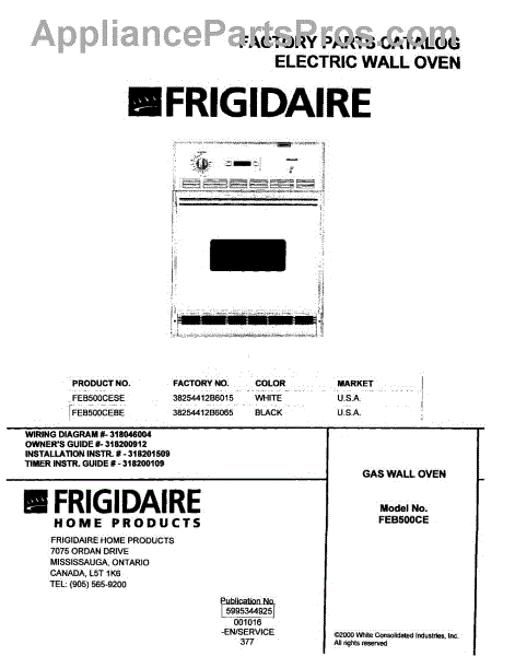 Parts for Frigidaire FEB500CEBE: 01 - Cover Parts