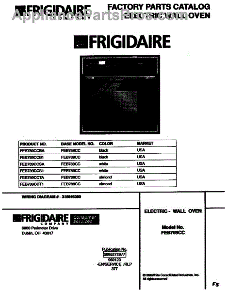 Parts for Frigidaire FEB789CCSA: 01 - Cover Parts