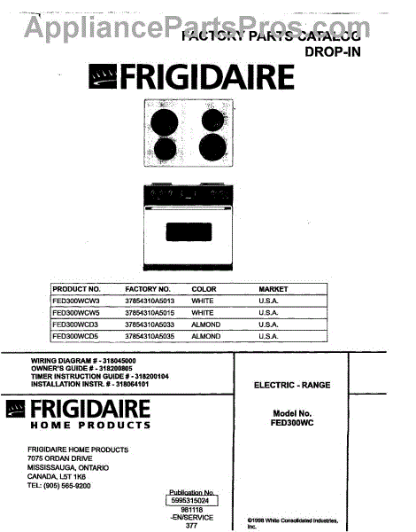 Parts for Frigidaire FED300WCW3: 01 - Cover Parts
