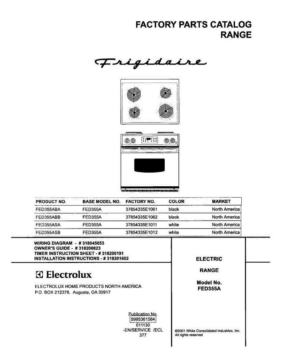 Parts for Frigidaire FED355ABB: 01 - Cover Parts