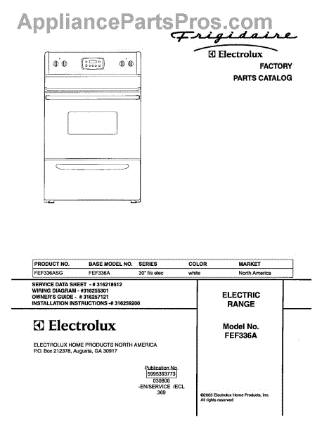 Parts for Frigidaire FEF336ASG: 01 - Cover Parts