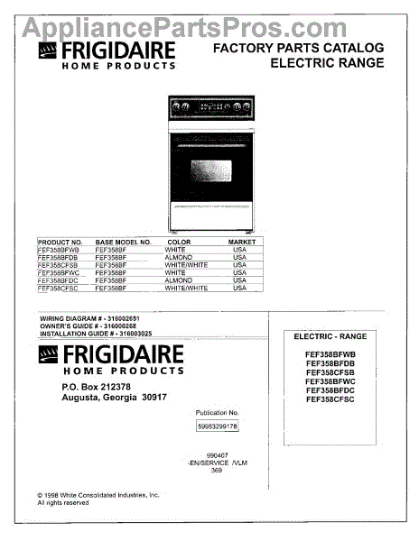 Parts for Frigidaire FEF358BFWB: 01 - Cover Parts