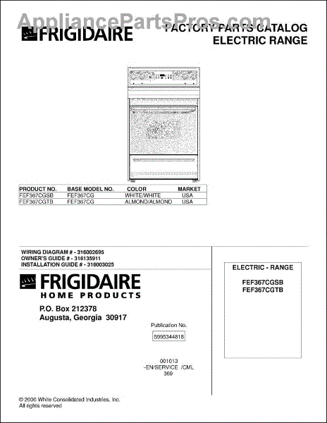 Parts for Frigidaire FEF367CGSB: 01 - Cover Parts