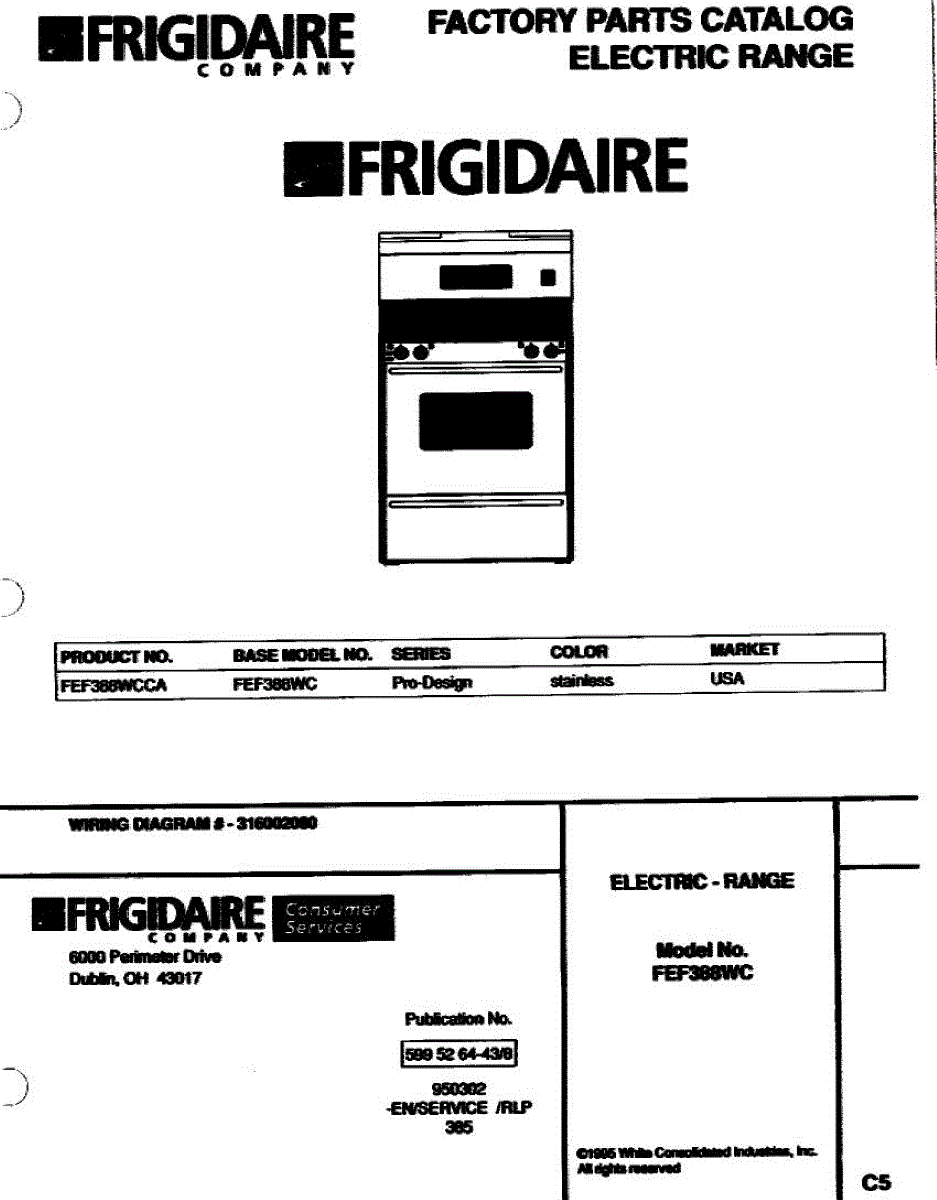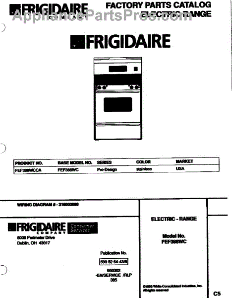 Parts for Frigidaire FEF388WCCA: 01 - Cover Parts