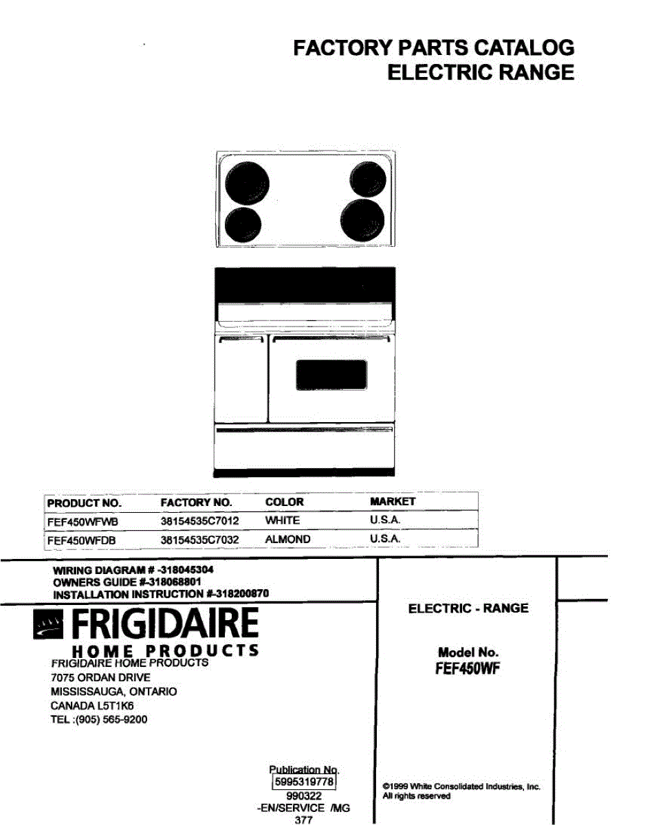 Parts for Frigidaire FEF450WFWB: 01 - Cover Parts