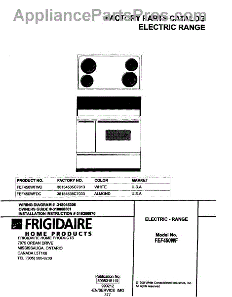 Parts for Frigidaire FEF450WFWC: 01 - Cover Parts