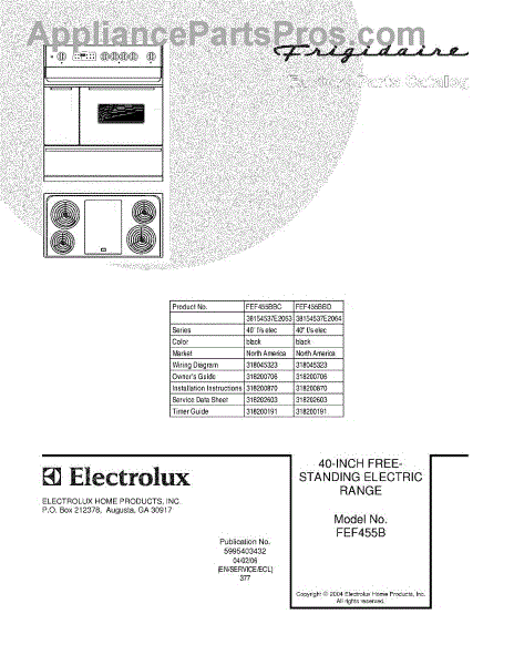 Parts for Frigidaire FEF455BBC: 01 - Cover Parts